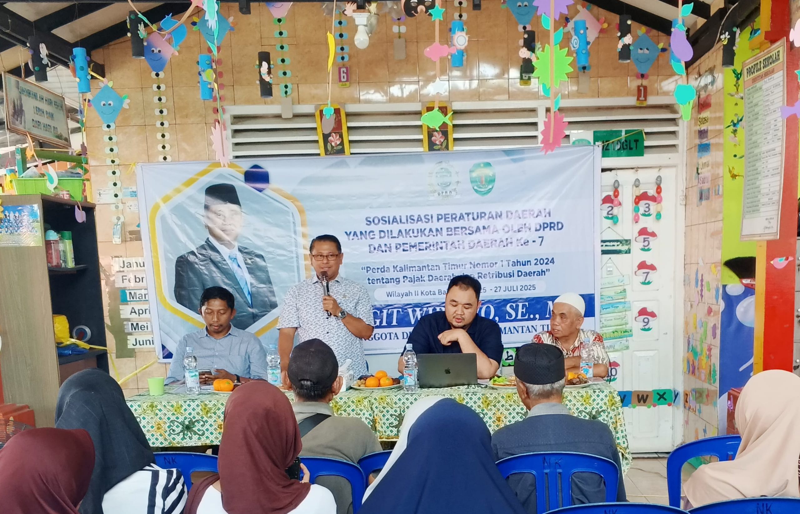 Balikpapan – Anggota DPRD Provinsi Kalimantan Timur, Sigit Wibowo, S.E., M.E., menggelar sosialisasi Peraturan Daerah (Perda) Nomor 1 Tahun 2024 tentang Pajak Daerah dan Retribusi Daerah yang di laksanakan di Jl. D.I. Panjaitan RT 80 Kelurahan Karang Rejo, Kecamatan Balikpapan Tengah, Kota Balikpapan. Sabtu (26/7/2025)